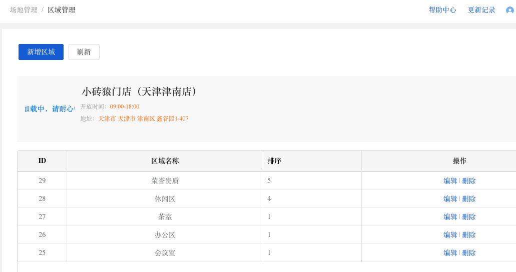 1. 商家可以在【店铺后台-场地-场地管理】-新建场地,例如:小砖猿门店(天津津南店)