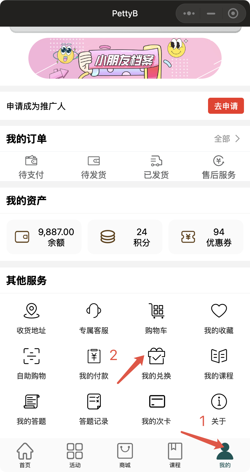 兑换码兑换 | 我的-兑换中心-输入兑换码 | 促销活动 | 兑换码需提前生成 |